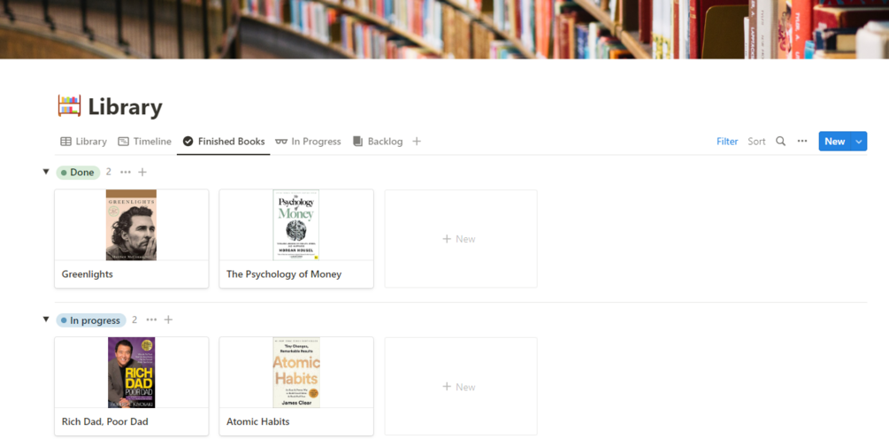 - A powerful database where you can log all the books you've read, along with key information such as the author, genre, and date completed.